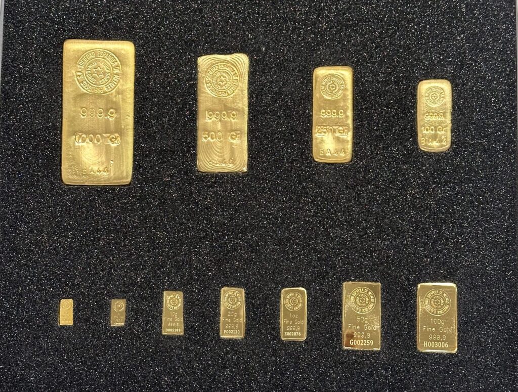 Los lingotes certificados (1 g, 5 g, 10 g, 20 g, 1 oz, 100 g, 250 g, 1 kg) son eficientes para acumular oro con primas más bajas por unidad de peso, especialmente en formatos grandes.